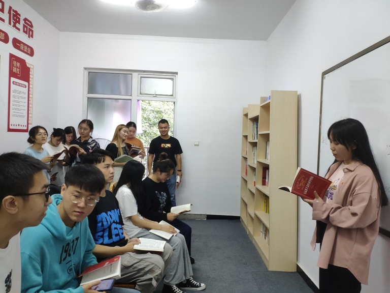 本网讯(文、图/刘熙雅)为了营造良好的读书氛围,加强党建工作,9月16日,第二片区全体学生党员在新二幢309值班室组织开展了“诵读红色经典,传承红色精神”的示范服务活动。