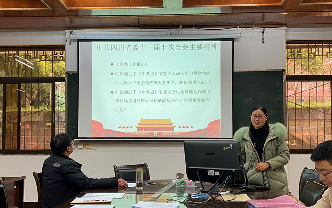 本网讯(图、文/薛文娟)12月16日下午,旅游学院在学院实验楼102教室组织全体教职工学习四川省委十一届十次全会、乐山市第八次党代会精神。