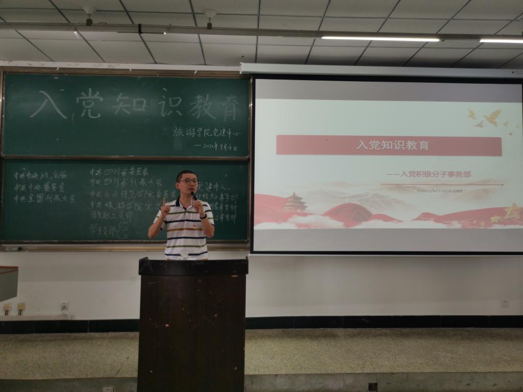 本网讯(图/唐晚黎、文/向乾森)旅游学院于2021年9月4日下午四点在行知楼414教室开展了入党知识教育讲座,20级辅导员孟凡帅老师与入党积极分子事务部的学生干部们对21级新生们进行了深入交流,旨在培养党的新鲜血液,肩负起国家复兴的历史使命。
