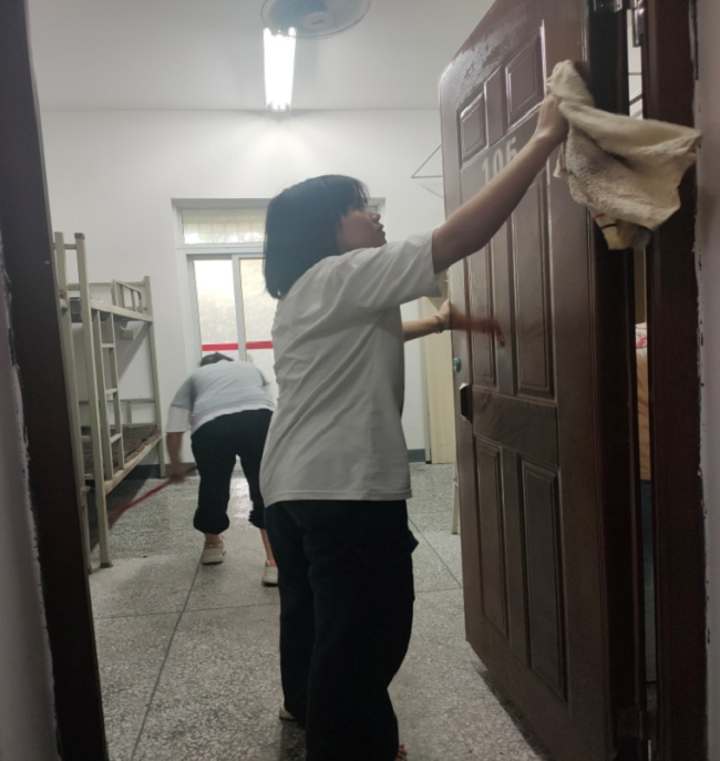 盼望着盼望着实习终于到了,2021年9月8日,我们一起前往犍为职高实习的同学纷纷收拾好行李,大家满怀期待、兴致勃勃。来到了犍为职高,犍为职高的老师热心地给我们叫同学来帮我们搬行李,并且还特地安排一些同学为我们打扫寝室卫生。因为才打扫完,地面还没干,对面寝室高二的同学们还热情的邀请我们到她们寝室休息。