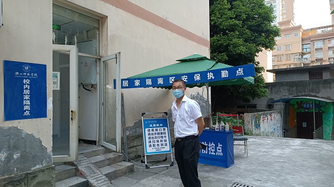 本网讯(文/马睿霞、图/喻剑)5月10日下午,旅游学院学生管理科科长江纳、辅导员喻剑前往学校集中隔离点看望了学院在此隔离的同学,为他们带去了学院领导及师生们的真挚关切。