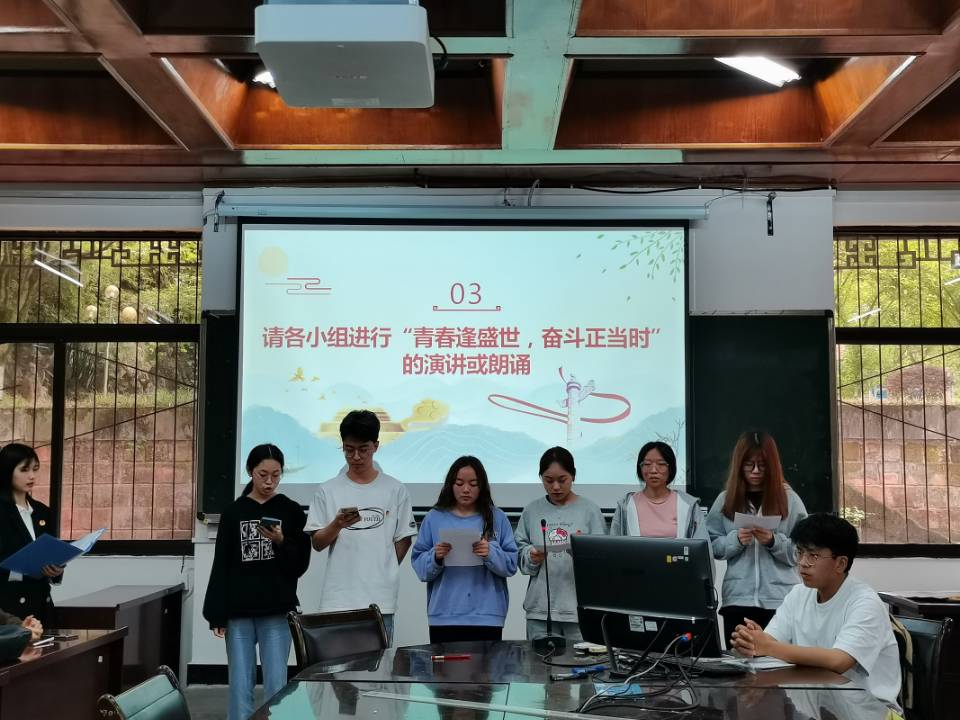 本次实践课的开展旨在推动学员们深入学习共青团百年奋斗征程。团课伊始,主持人点明主题,团课正式开始,全体起立,迎团旗,唱团歌。团歌毕,送团旗,全体礼毕。随后,主持人宣读实践课考核标准,邀请小组登台,做“青春逢盛世,奋斗正当时”的演讲或朗诵。小组展示结束,主持人邀请学员参与共青团基本知识竞答。在答题的过程中,学员们巩固了共青团知识,提升了思想素养。紧接着,到了有趣的游戏环节——“心有灵犀”挑战,学员们积极参与,学逸结合,相得益彰。