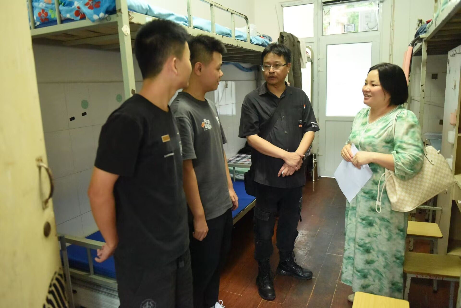在走访过程中,学院老师与新生们亲切交谈,详细询问了同学们的入学感受以及对大学生活的适应情况,鼓励同学们要尽快适应新环境,积极融入大学生活,珍惜大学时光,努力学习专业知识。郭剑英特别强调了同学之间要友好相处,营造和谐的寝室氛围并学会自我管理,做好学习的规划和目标的落实。新生们对学院领导和老师们的关心表示感谢,并纷纷表示会尽快适应大学生活,努力学习,积极参加各种活动,为学院的发展贡献自己的力量。