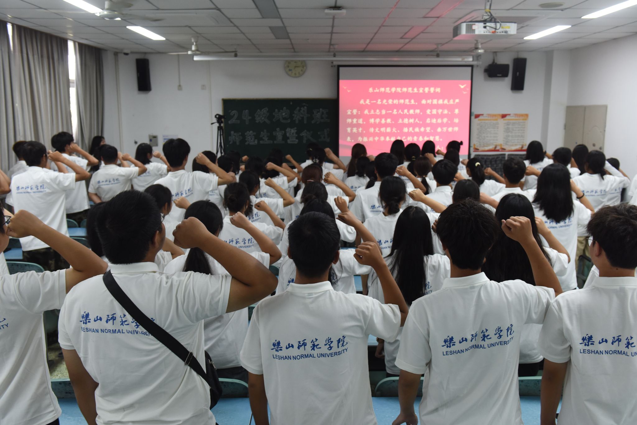 在班长的带领下,同学们庄严宣誓,表示在今后的学习和工作中将秉持教育的初心和使命,努力提升自身专业素养,为教育事业的发展贡献自己的力量。