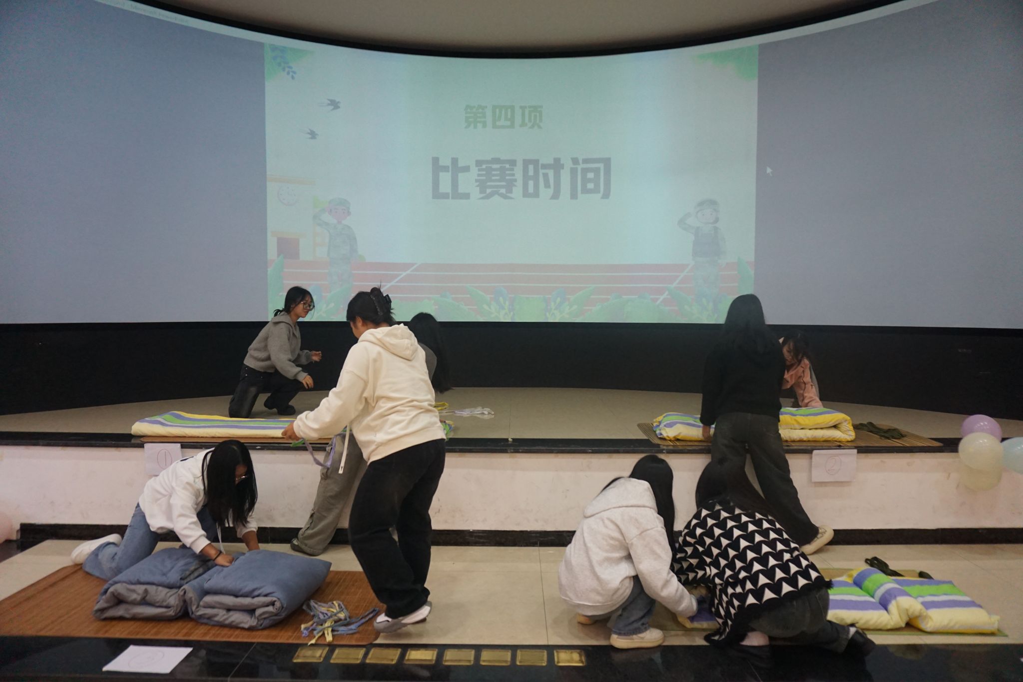 本次比赛分为三轮,比赛内容为叠军被与打包被。在主持人宣布了比赛规则与评分标准之后,比赛正式开始。选手们争分夺秒,细致地叠着军被,一床床军被在他们手中变得方正。随后选手们又迅速地打包被,动作利落。在经历了紧张刺激的角逐之后,评委们评出了本次比赛的优胜者,刘建华、黄利加获得了一等奖。