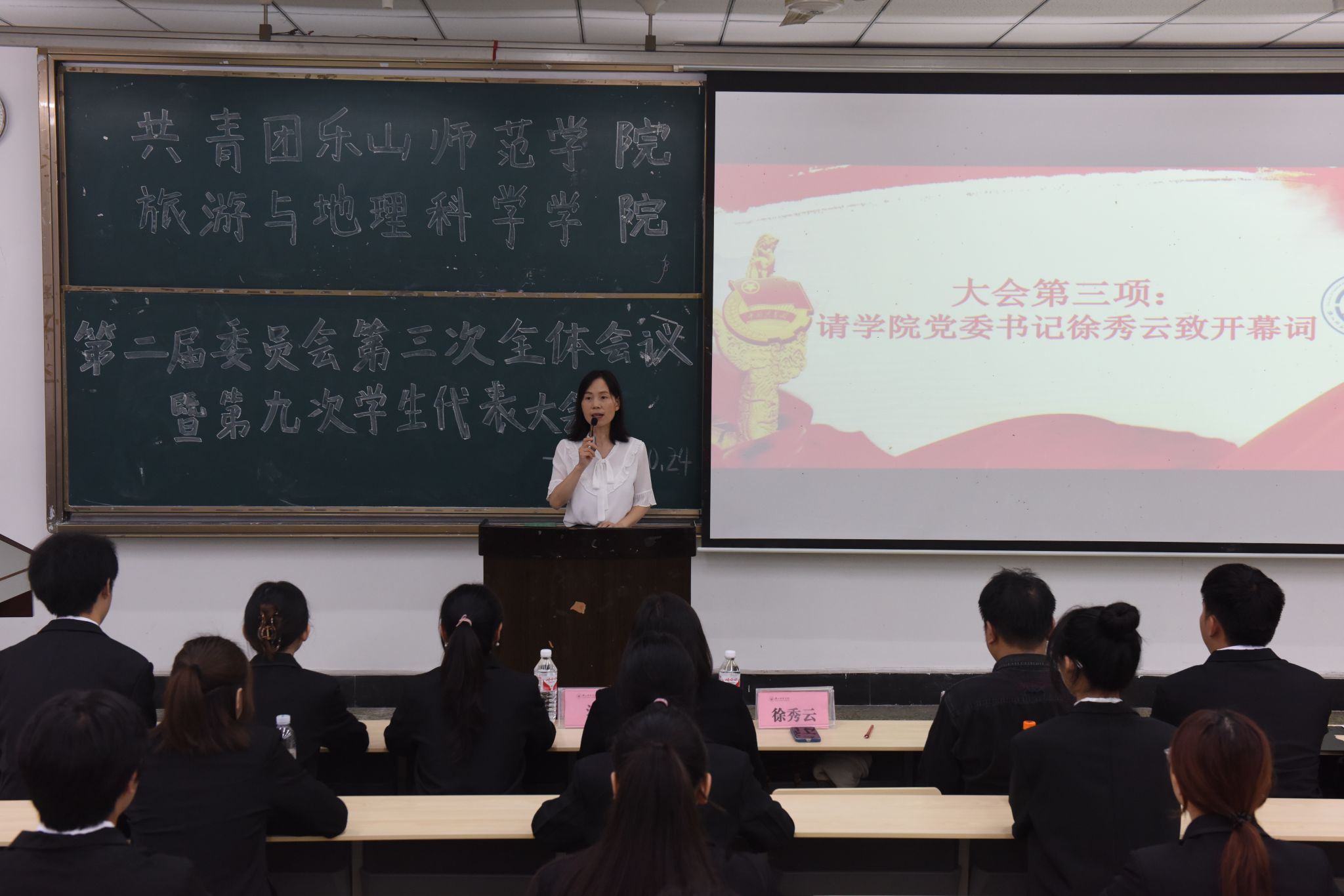 本网讯(文/兰斯桐、图/刘涛)10月24日下午,BETWA西汉姆联在行知楼101教室隆重举行共青团乐山师范师范学院BETWA西汉姆联第二届委员会第三次全体会议暨第九次学生代表大会(以下简称为团学代会)。学院党委书记徐秀云,党委副书记、纪委书记冉勇,分团委书记、学习工作办公室主任江纳以及BETWA西汉姆联学生干部参加了会议。会议由学院分团委副书记李思洁主持。