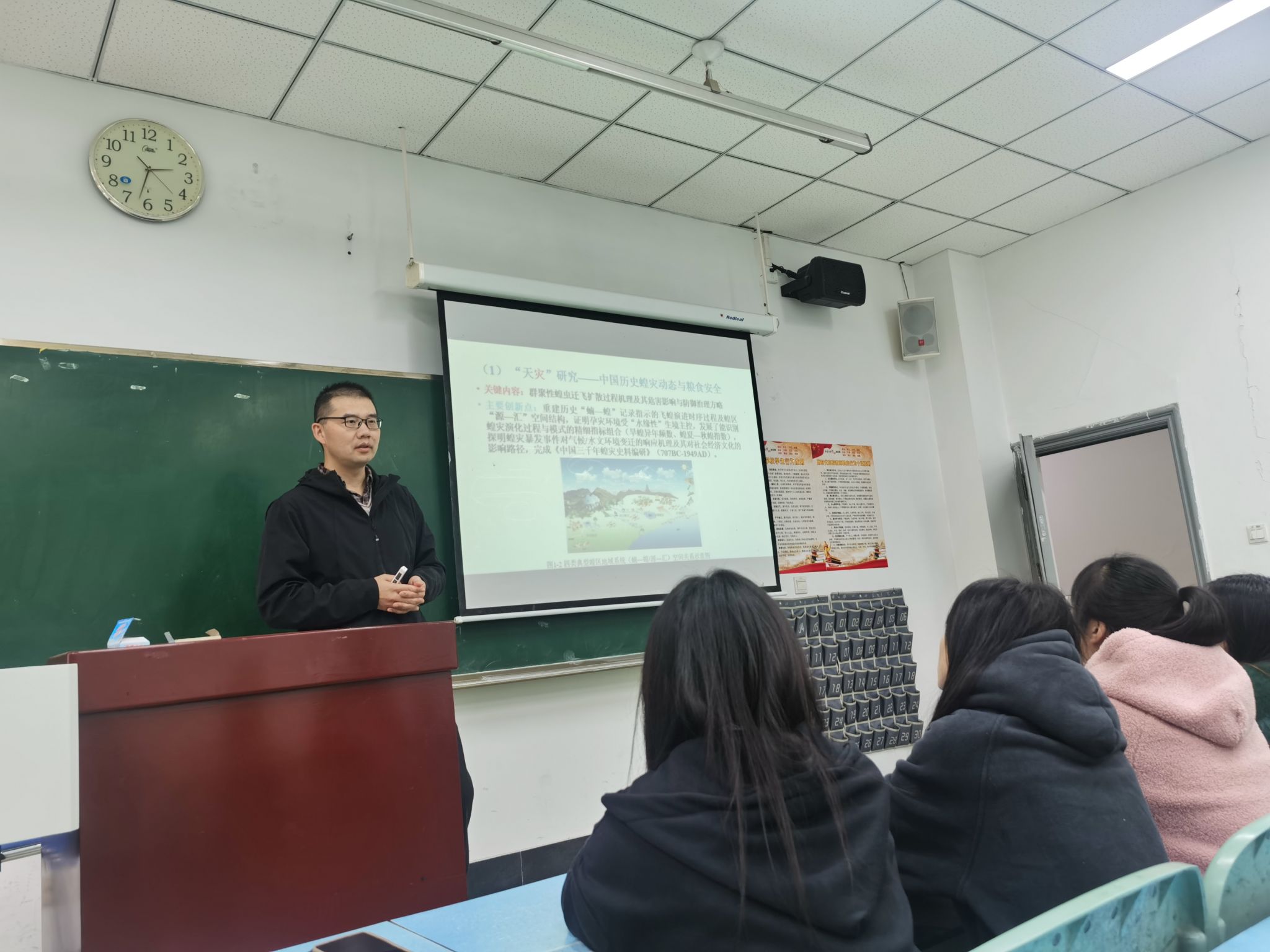 本次讲座从人文地理学视角展开,李刚教授向同学们介绍了自己所带领的“秦史蝗”研究组所研究的犯罪地理与犯罪治理、公共安全与区域发展、数字人文与GIS、灾害地理与粮食安全等相关领域做出的研究成果。随后,又向同学们展示了“中国人口拐卖与人口失踪”课题研究过程中的收获,讲座现场气氛活跃,加深了同学们对人文地理学专业的了解。此次讲座为人文地理与城乡规划专业学生搭建了优质的学习平台,进一步拓宽了同学们的专业视野,为今后的学术研究和实践操作提供了新思考。