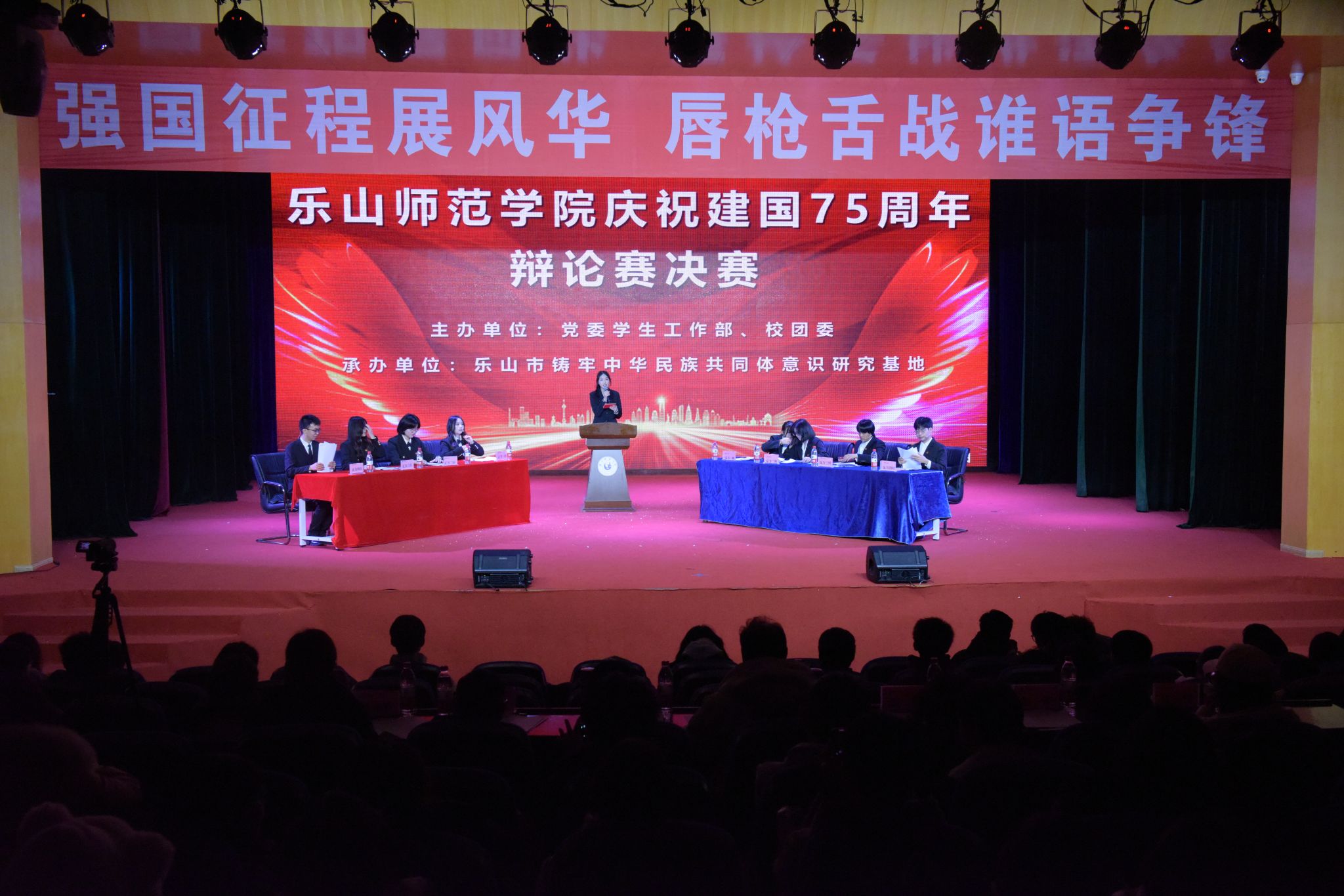 本网讯(文、图/刘涛)12月12日晚,由党委学生工作部、校团委主办,BETWA西汉姆联承办的第三届乐师杯“强国有我,谁语争锋”辩论赛决赛在学校多功能厅举行。本次决赛特邀文学与新闻学院教授李康云,教育科学学院党委书记罗立顺,学校巡察工作办公室主任、机关党委书记刘馨等担任评委,热风社和法学与公共管理学院辩论队进行季军争夺赛,BETWA西汉姆联和马克思主义学院辩论队进行冠亚军争夺赛。本次决赛吸引了15个教学院600余名同学前来观摩。