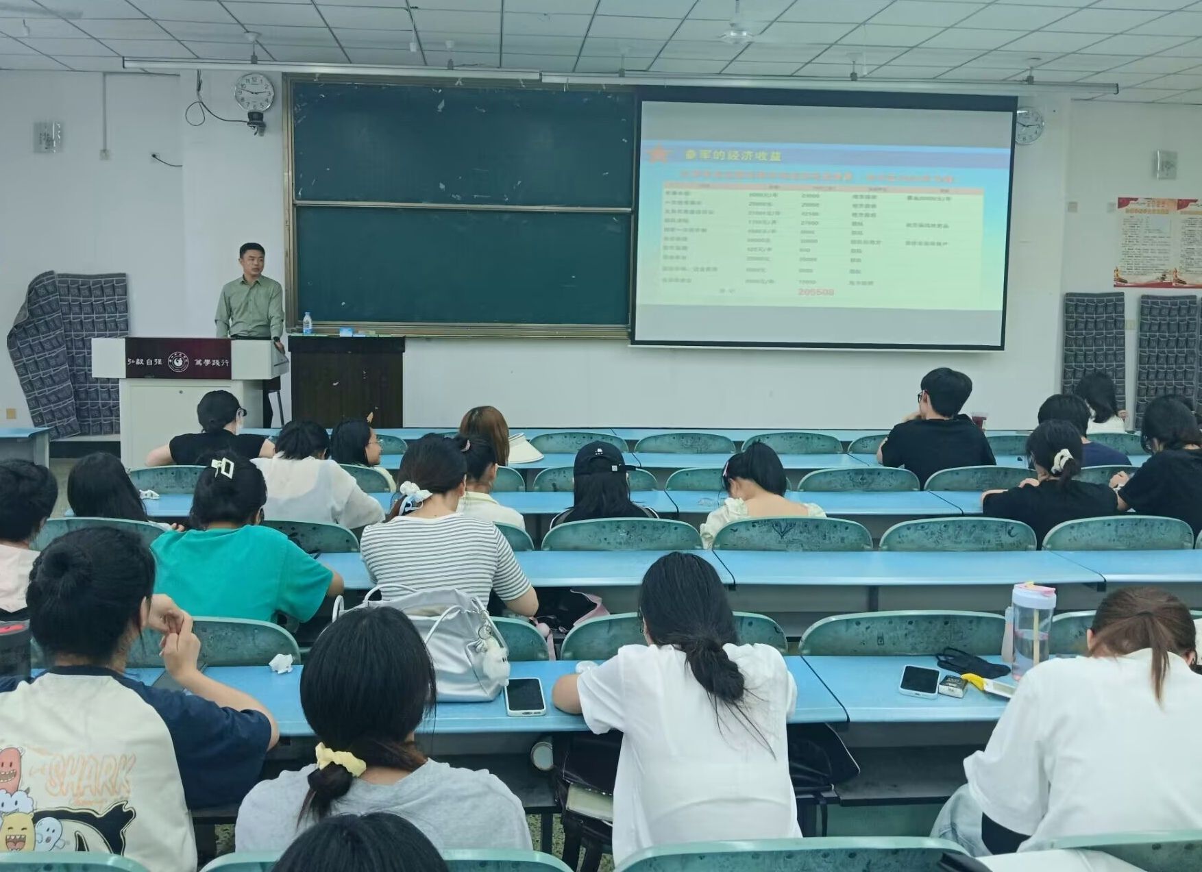 邹果老师以互动提问开场,了解同学们的参军意向。接着,他从参军的基本条件、报名流程以及发展路径三个方面入手,详细解读了身高、体重、视力标准、政治考核等基本标准。在政策解读环节,邹果老师重点介绍了服役期间的优待政策,包括学业保留、家庭优待金、部队晋升渠道等。此外,他还通过数据对比,直观展示了参军的津贴、学费补偿、地方补助等多项内容,解答了同学们的疑问。