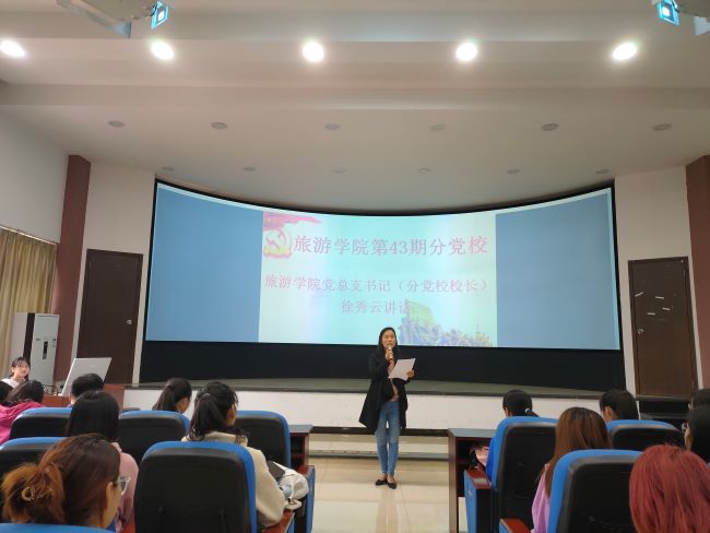 本网讯(文/刘熙雅 /庄悦)近日,旅游学院分党校在旅游学院3D实验室举行第43期入党积极分子培训班开班典礼。出席开班典礼的有旅游学院党总支书记、分党校校长徐秀云,旅游学院学生党支部书记谭妙、郑曾俊、王一鸣,以及第43期分党校全体学员和新发展党员。
