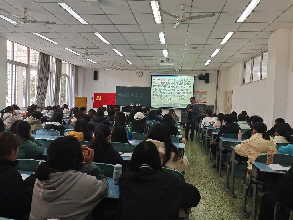 冉勇以“细说文化及文化强国”为主题,详细阐释了中华文化的起源,文化在国家建设中的作用,文化对民族进步的意义以及文化的动态发展过程。他希望当代青年大学生要深度学习中华文化,深刻理解中华文化内涵,响应国家“文化强国”建设号召,进一步发挥社会主义意识形态在文化强国中的引领作用。最后,冉勇希望同学们知行合一,笃学慎行,不断充实自己,提高自己的文化素养。