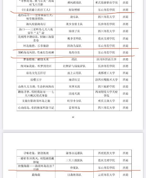 冯晓兵老师指导的学生作品《秉足椰游》、《行走在路上的打工人》分别荣获环岛旅游公路组作品类西南赛区二等奖和三等奖;郑柳青老师指导的学生作品《环岛旅游,乐享旅游》、左莉老师指导的学生作品《领略海岛风情,传承红色精神》、但强老师指导的学生作品《映像海南-海南环岛旅拍7日游》分别荣获环岛旅游公路组作品类西南赛区三等奖。