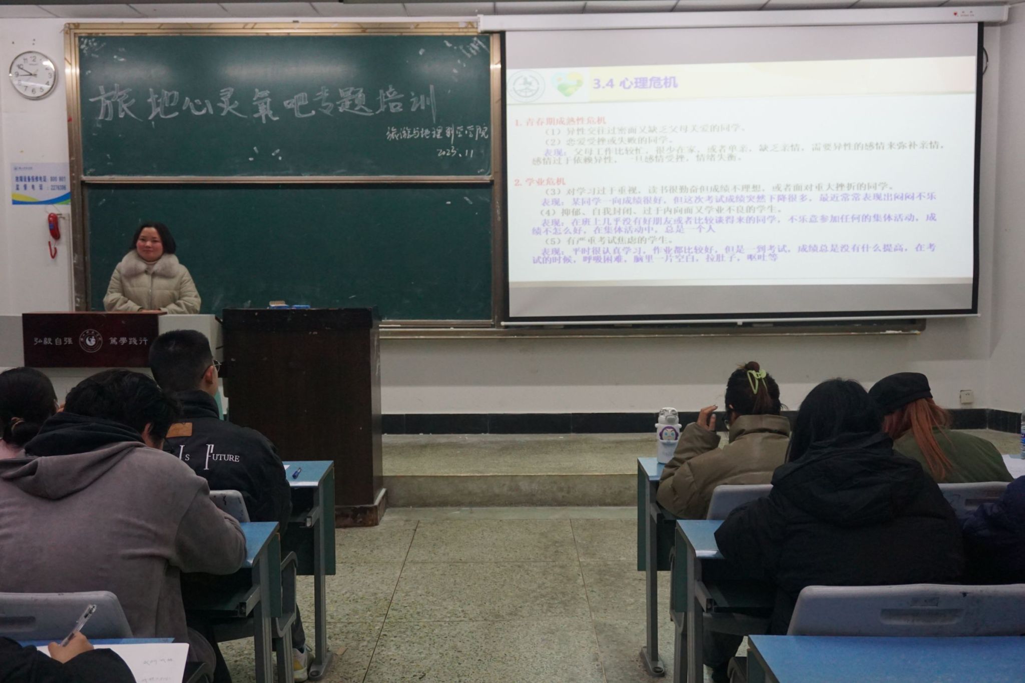 本网讯(文/江纳 图/周颖)11月15日,BETWA西汉姆联二级心理辅导站(旅地心灵氧吧)举办了以“关心你周围的同学”为主题的心理健康教育暨心理委员培训。非毕业年级心理委员、大一全体学生干部、新生代理班主任参加了此次培训。学院二级心理辅导站站长江纳为大家作了培训。
