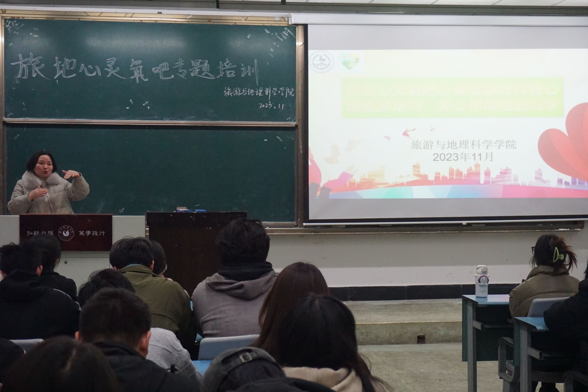 江纳引用清华大学心理学教授樊富珉的名言“只有优异的成绩,却不懂得与人交往,是一个寂寞的人;只有超人的思维,却不了解自己,是一个迷惘的人;只有过人的智商,却不懂得控制自己,是一个危险的人”,指出心理健康教育在学生健康安全、成长成才、全面发展中的重要意义。江纳通过近十年来新闻报道中关于大学生自杀及其原因的统计数据强调关心周围同学的必要性。培训中,江纳介绍了健康新概念:健康的金三角、美国人本主义心理学家马斯洛提出的“心理健康的标准”、健康通俗的“五快”和“三良好”标准、一个心理健康的人需树立的三个“意识”和需培养的五种心理能力等心理健康知识,重点探讨了心理委员和其他班干部如何关心同学们的心理状态,遇到有心理困扰的同学应如何妥善处理。
