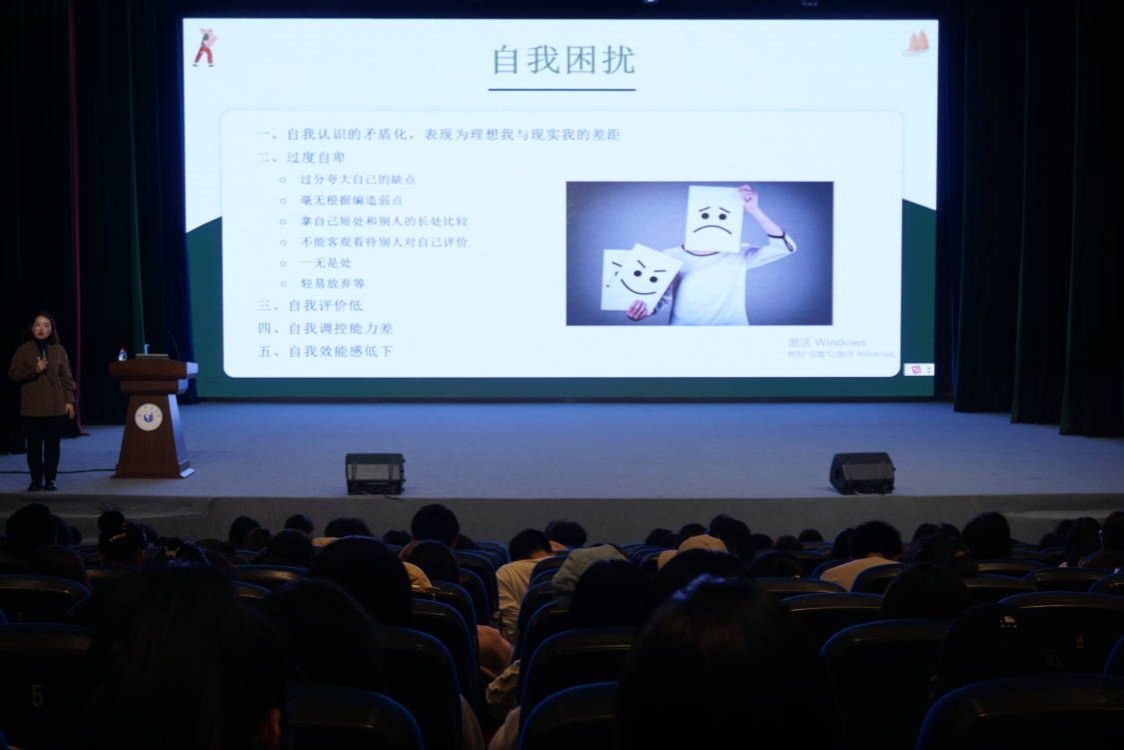 本次讲座以江纳的一段开场白拉开心理讲座的序幕,朱闻文用一个暖身小活动作为切入点调动学生的积极性,之后主要针对大学新生适应、生活困扰、异性关系中的相处原则、职业目标困扰等进行分析讲解。同时为同学们处理人际关系,环境适应等提出建议与方法指导。