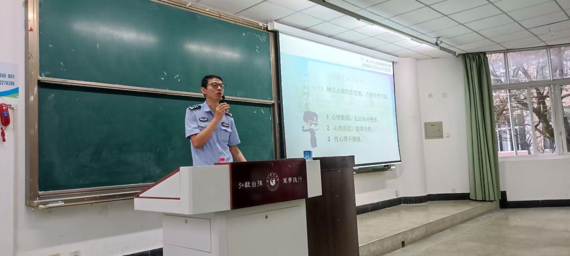 李毅从两个方面为同学们讲述有关大学生安全防范问题。第一类是普通安全防范,主要包括防范大学生情感方面及受到不法侵害的问题,李毅警官引导大家明晰法律范围内的自由;如遇到抢劫等暴力性犯罪时,首先要保证生命安全;而在日常生活中要多给予别人更多的人文关怀。第二类是网络安全防范,李毅警官结合多年的从警工作经验,用发生在学生身边的典型电信诈骗案例向同学们阐述了当前电信网络诈骗犯罪特点,重点从网络刷单、网络贷款等方面分析骗子的伎俩和手段,并向大家传授了防诈骗十不要准则。