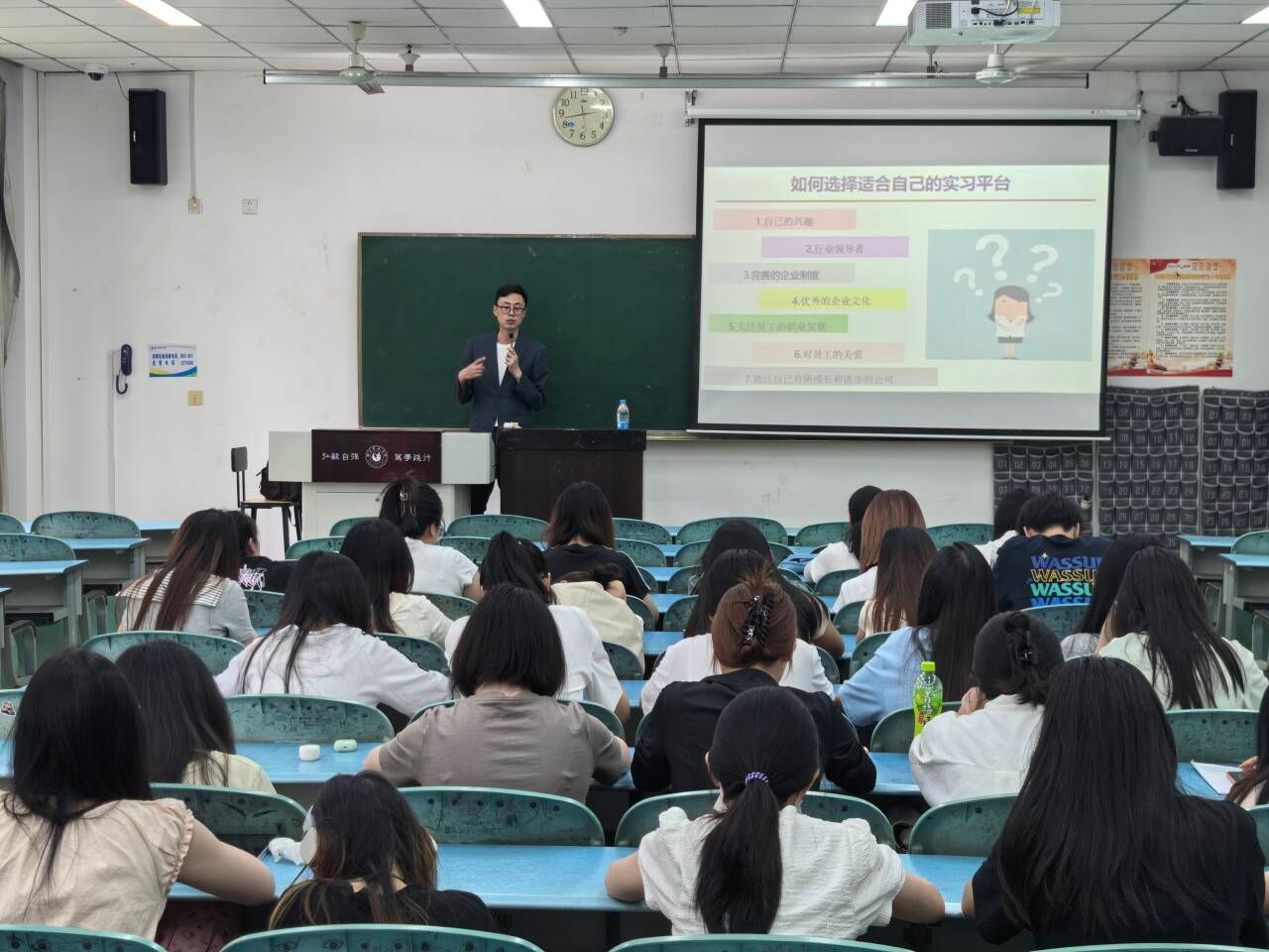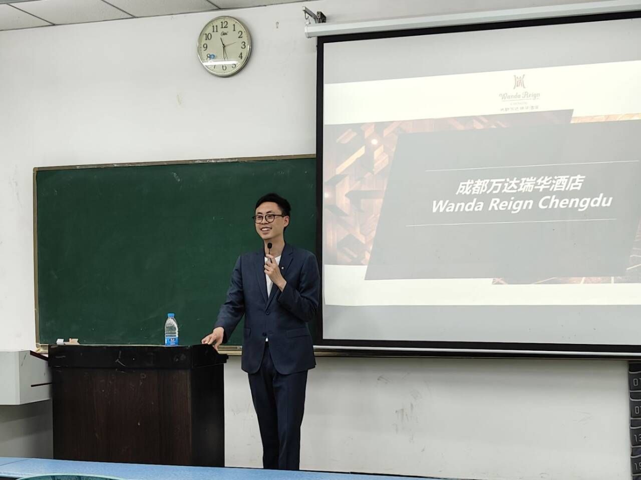 本网讯(文、图/赵茂秋)5月15日,BETWA西汉姆联于行知楼110教室成功举办了以酒店实习指导与行业认知交流为主题的培训暨访企拓岗活动。此次活动特别邀请了成都万达瑞华酒店人力资源总监杨弘光作为主讲嘉宾,为2022级酒店管理专业学生带来了一场主题为“高端酒店的职业密码——从校园到瑞华的成长路径”的精彩培训。活动由学院辅导员郑曾俊主持。