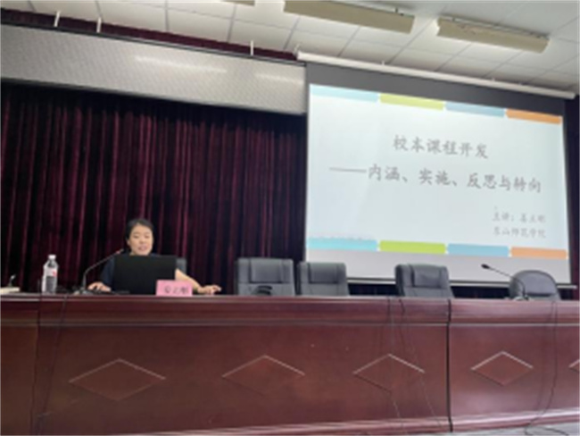 下午,教育科学学院姜立刚老师以“校本课程开发——内涵、实施、反思与转向”为题为学员们做了讲座。姜立刚首先提出了校本课程开发的实质就是以学校为基地进行的课程规划、编制、实施和评价的一种课程,校本课程开发的价值诉求是张扬学生个性、推动教师发展、形成学校特色。她主张把校本课程开发转变成微课题,根据日常教育实质去收集分析数据和提炼研究成果来确定研究课题。