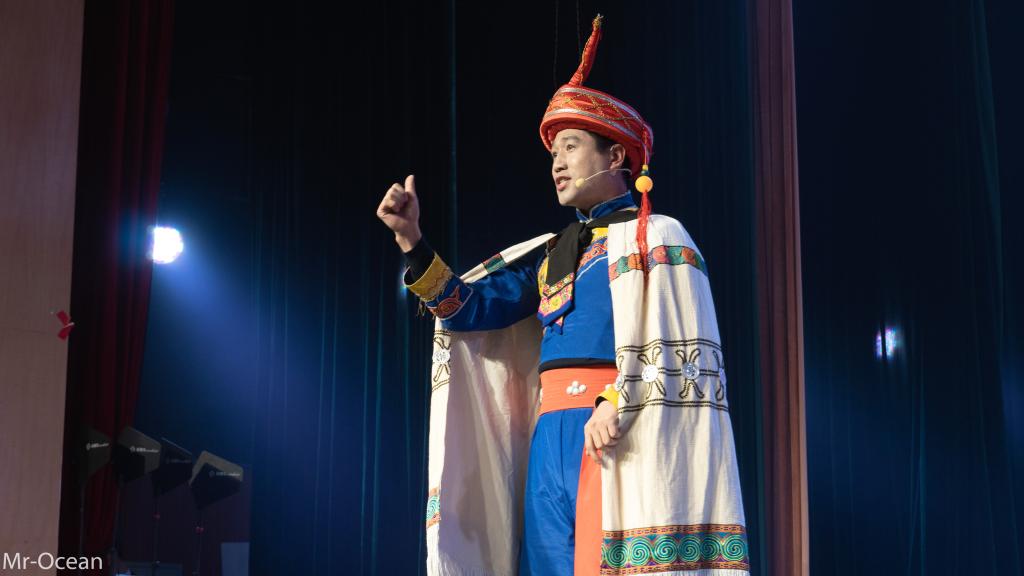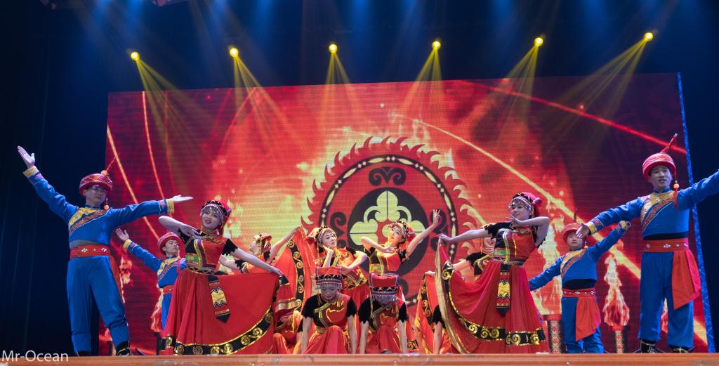 节目是融导游讲解、情景演绎、旅游扶贫、彝族舞蹈于一体,将扶贫和艺术完美结合,教职工们身穿彝族特色服装,踏着欢快动感的音乐节拍,在舞台上展现精彩的表演,为观众带来民族文化的享受。同时,除了炫目的舞蹈节目外,还穿插了我院领导及老师的导游讲解、情景演绎,让整台节目别具一格,充分结合和展示了旅游学院的专业风采。