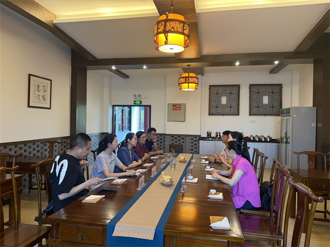 随后,双方移步学院茶艺实验室座谈交流。郭剑英从“产教融合、赛教结合”的角度,系统介绍了学院旅游管理国家一流专业的建设路径:专业建设方面,构建“理论+实践+创新”三维课程体系;实验室建设方面,特别介绍了旅游规划模拟系统、酒店收益管理仿真平台等特色亮点;学生竞赛方面,通过建设“以赛促学、以赛促教”机制,多次在全国大学生旅游策划大赛、酒店服务技能竞赛斩获佳绩。