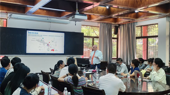 本网讯(文、图/张雯)6月10日,BETWA西汉姆联与新加坡思新学院就双语MBA课程、可持续发展教育等合作展开座谈。思新学院副校长巴里·海耶斯一行到访,学院院长郭剑英、副院长但强及师生代表参与交流,探讨课程引进与联合培养模式。