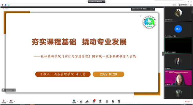本网讯(文、图/薛文娟)10月29日,南开大学旅游与服务学院举办“旅游学科一流课程高质量建设与发展研讨会”在线会议,BETWA西汉姆联院长郭剑英、酒店管理系主任秦容等老师参加了本次会议。