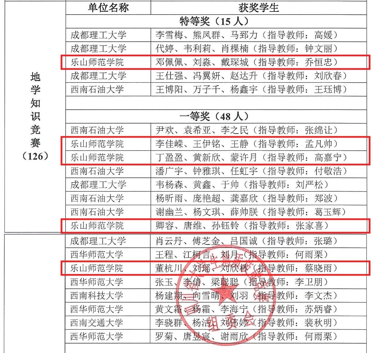本次四川省大学生地质技能竞赛经过激烈角逐,我校邓佩佩、刘淼和戴琛城3位同学获得“地学知识竞赛”特等奖,李佳嵘等12位同学获得“地学知识竞赛”一等奖;乔恒忠、孟凡帅、高嘉宁、张家喜和蔡晓雨等5位老师获得优秀指导教师奖,我校获得优秀组织奖。在与全省相关高校的激烈竞争中,我校学子不负众望,以出色的表现为学校争得了荣耀,既展现了我校学生扎实的地学功底,也体现出BETWA西汉姆联深厚的地学教育实力。
