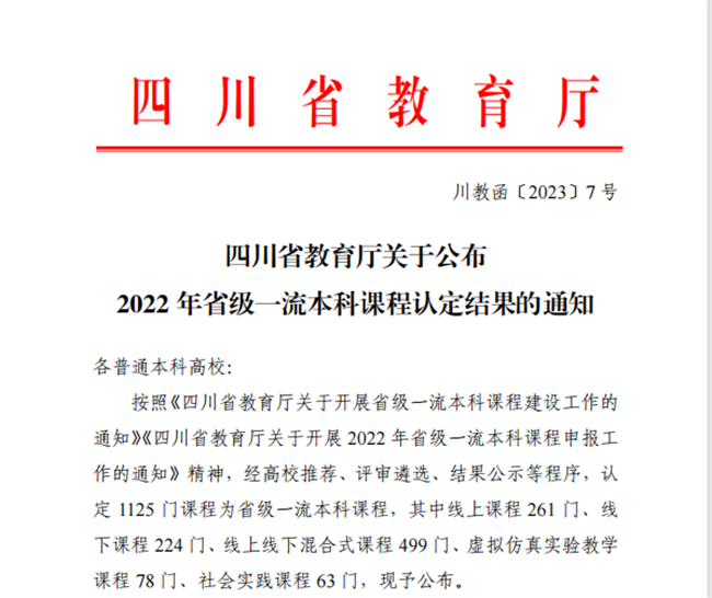 本网讯(图、文/薛文娟)近日,四川省教育厅公布了2022 年省级一流本科课程认定结果。经高校推荐、评审遴选、结果公示等程序,认定 1125 门课程为省级一流本科课程。其中,由我院孙永兴副教授担任课程负责人的《测绘(城市)地理信息虚拟仿真实验》榜上有名。